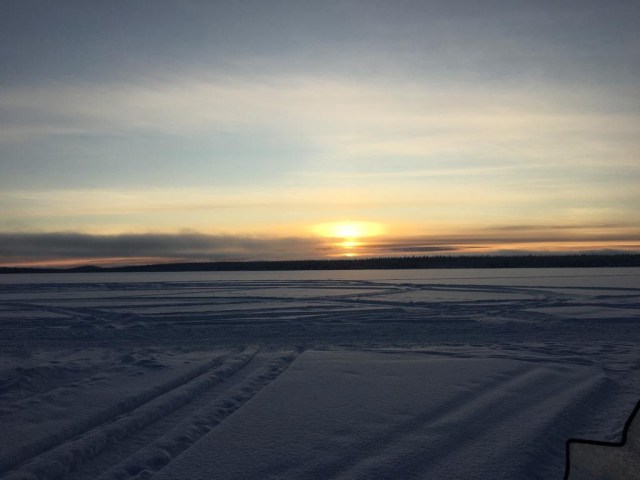 The sun began to set while we finished snowmobiling