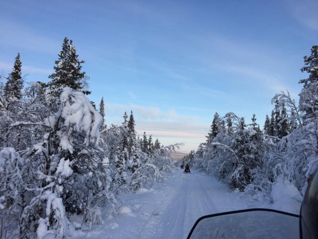 On the snowmobile trail