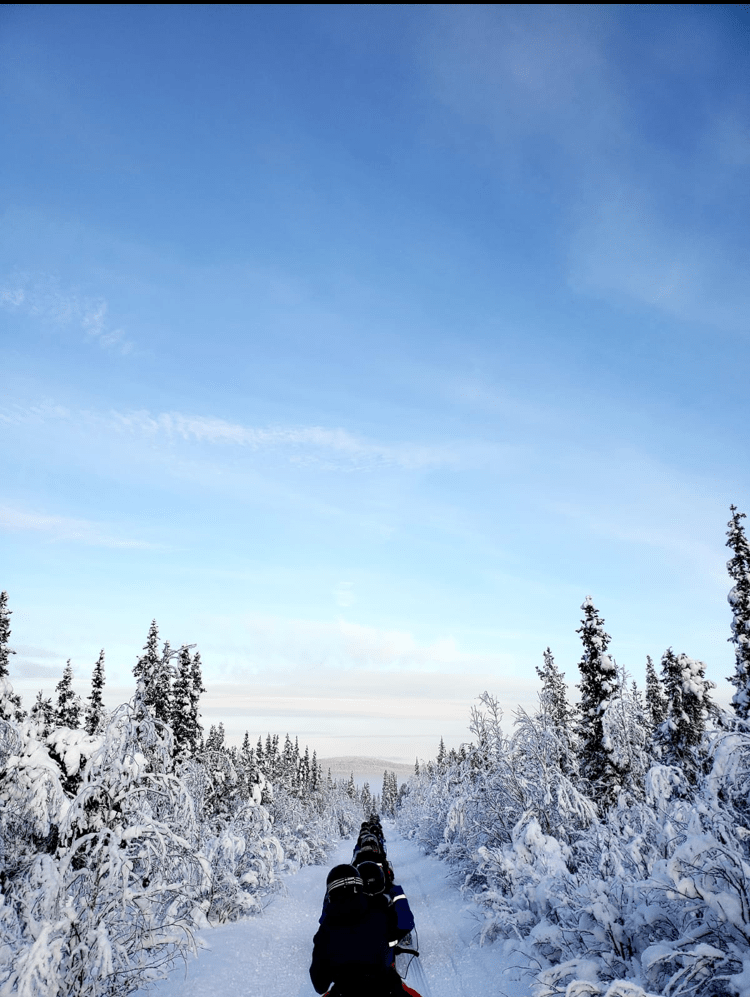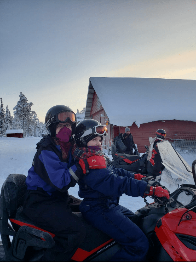- Snowmobiling: I was super nervous before going out on the ice, but I am now a snowmobile fiend. We drove around the frozen lake for a few laps, before going through the woods and down the frozen Torne River, driving past the Ice Hotel. We were also able to visit an indigenous Sami family and meet some of their reindeer.
